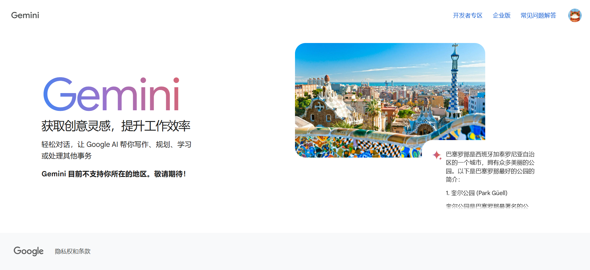 Google Gemini 3 Pro 发布后,我兴冲冲的打开了它的网页,结果【Gemini 目前不支持你所在的地区。敬请期待!】。不甘心的我尝试了很多种办法。