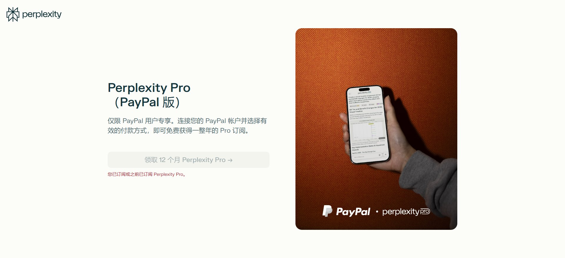 - 通过paypal撸一年Perplexity Pro订阅,地址如下